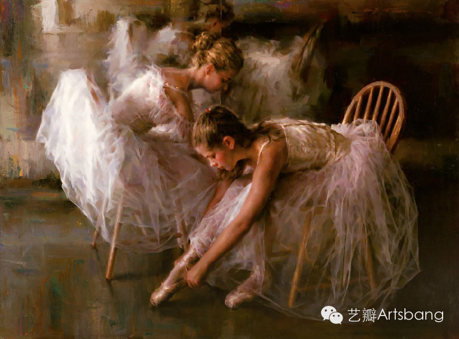 这些女孩在画布上所表现的种种姿态神情,是以现代艺术的经典油画笔触,画出这些在人生最美好时期的青春女孩,恋上芭蕾舞后呈现的种种练功辛苦和获得进步时的纯真喜悦,及精彩瞬间。